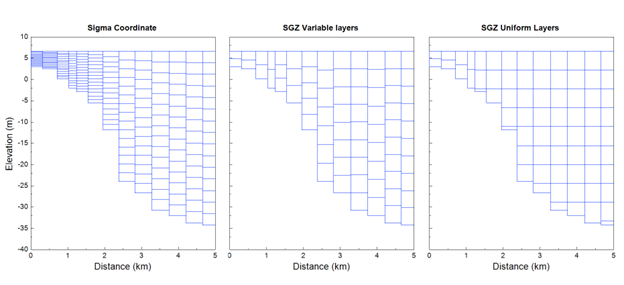 - The Sigma-Zed approach allows the number of layers to vary across the model domain.